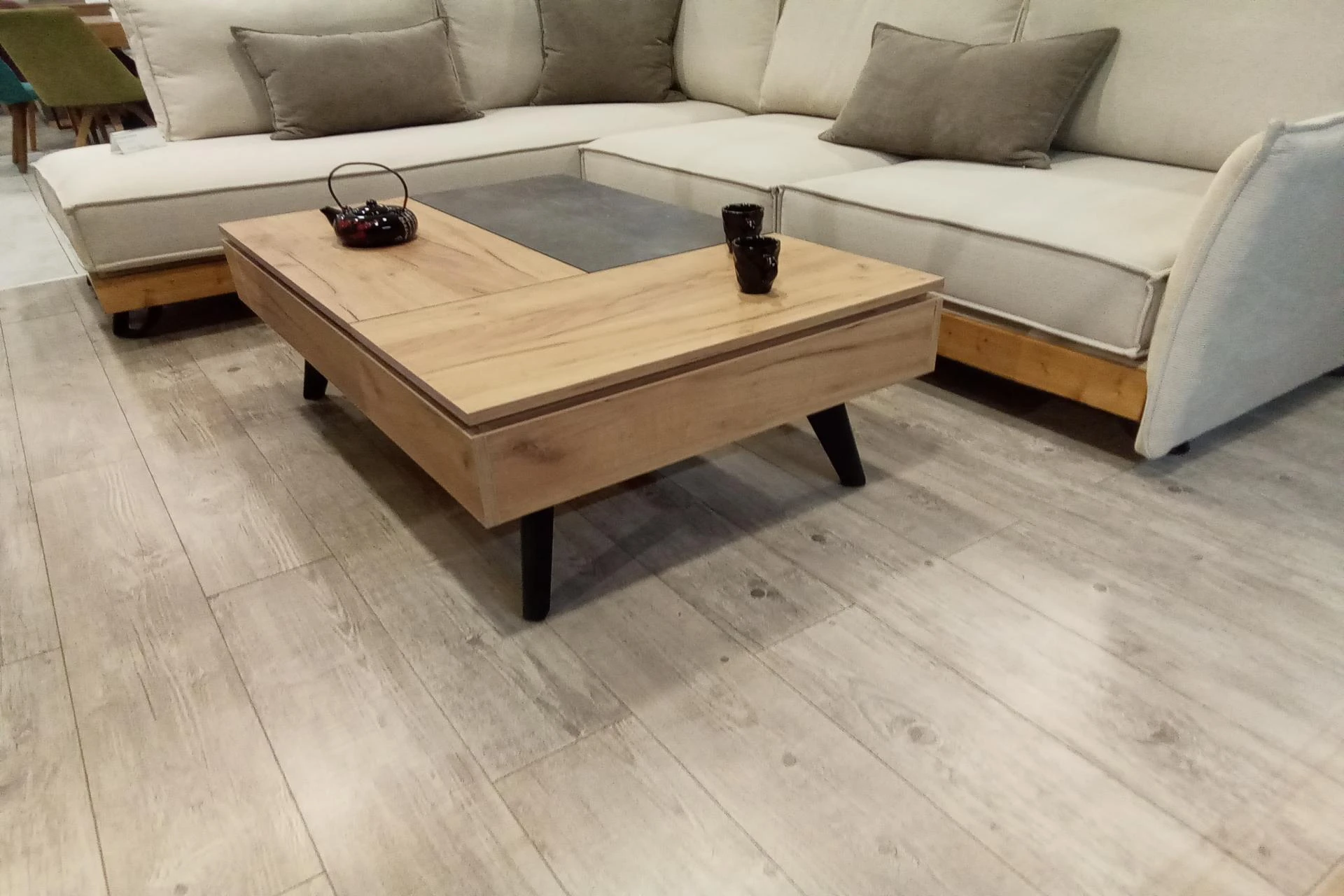 Ένα μοντέρνο τραπέζι σαλονιού με σερβιτόρο, ιδανικό για όσους συνηθίζουν να τρώνε ή να δουλεύουν στο σαλόνι τους και όχι μόνο.