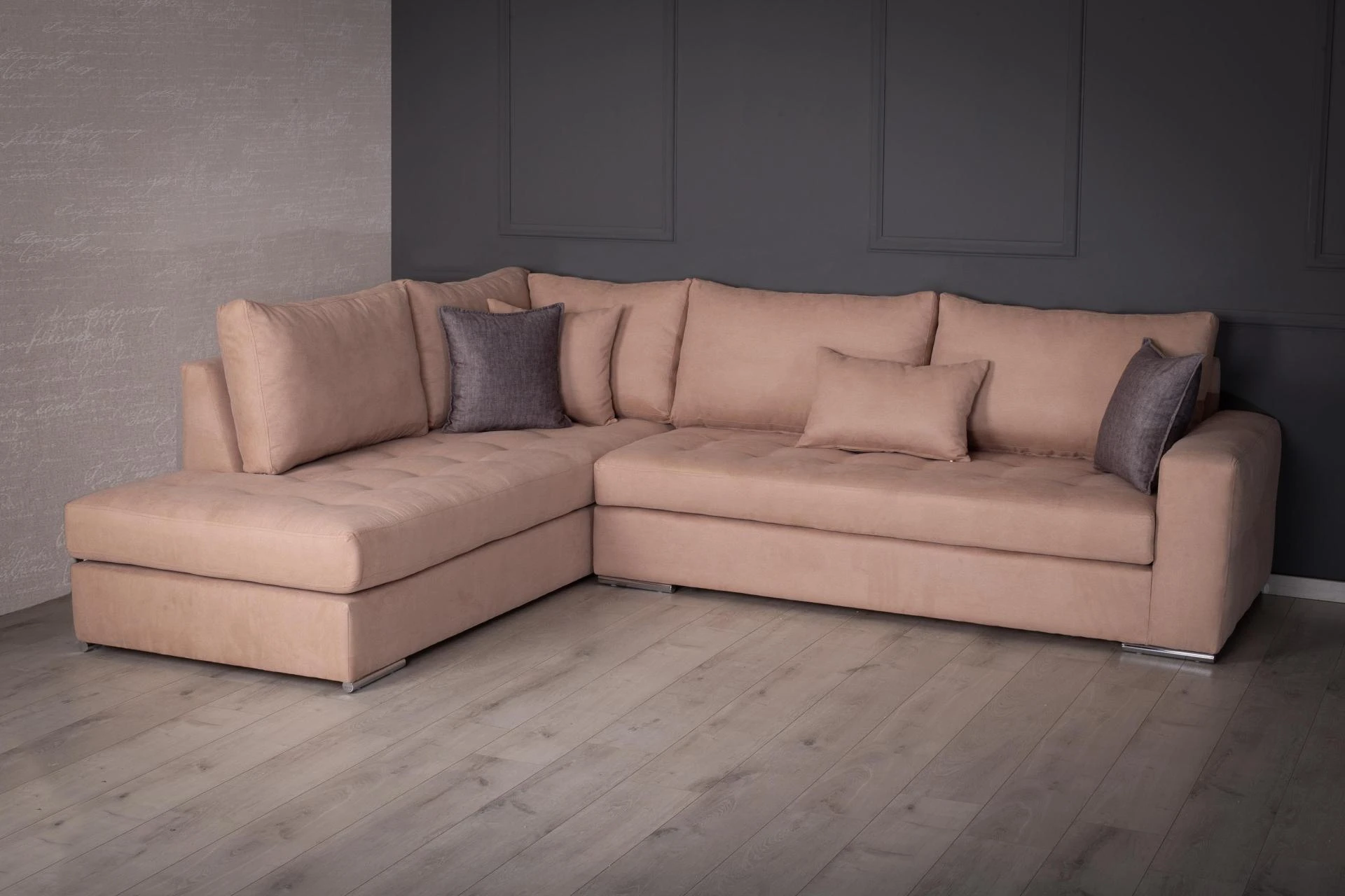 Γωνιακός καναπές Υπατία , απόλυτα αναπαυτικός και άρτια κατασκευασμένος με σκελετό ξύλου οξιάς .