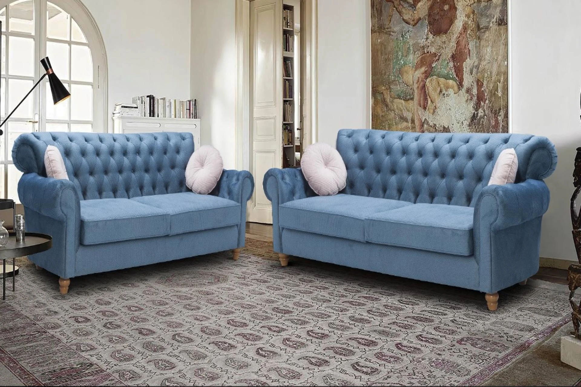 Διαθέτει αναπαυτικό κάθισμα , καπιτονέ σχεδιασμός στις πλάτες ιδιαίτερα γυριστά μπράτσα που τονίζουν την κλασσική γραμμή του σαλονιού .