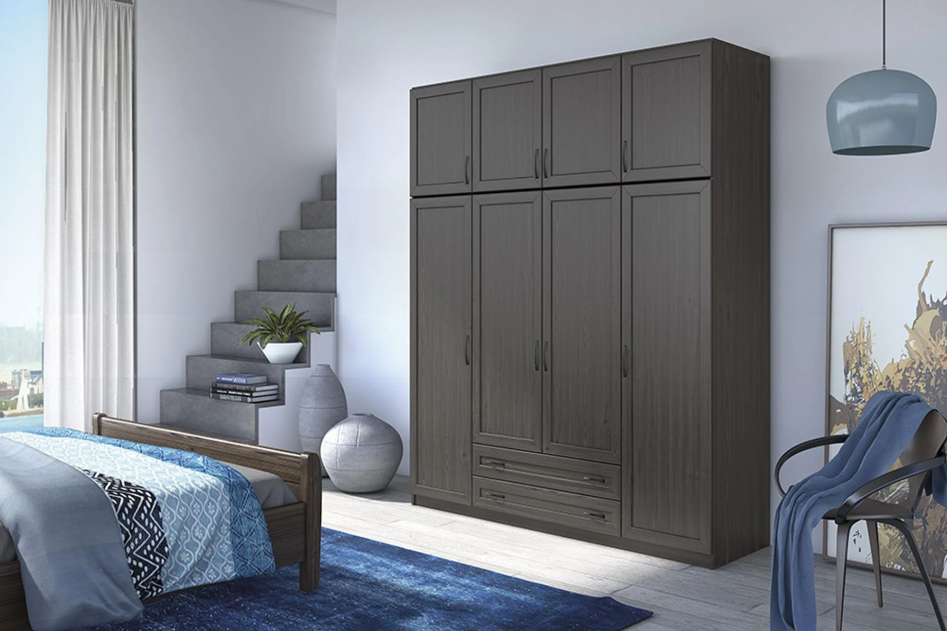 Ντουλάπα 4φυλλη με πατάρι, νταμπλαδωτή, χαρακτηρίζεται από στιβαρότητα και κλασσικό design με ταμπλαδωτές πόρτες και έξυπνους χώρους αποθήκευσης.
